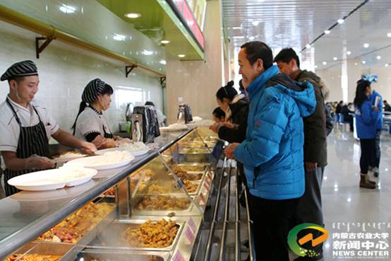 12月24日学生处副处长侯振虎也带领各学院党委副书记走进食堂,深入了解学生饭菜品种及价格、后厨卫生、食品加工流程以及就餐环境等详细情况。